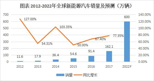 在此背景下,全球新能源汽車銷售量從2011年的5.1萬輛增長至2017年的1621萬輛,6年時間銷量增長30.8倍。未來隨著支持政策持續(xù)推動、技術(shù)進步、消費者習(xí)慣改變、配套設(shè)施普及等因素影響不斷深入,GGI預(yù)計2022年全球新能源汽車銷量將達到600萬輛,相比2017年增長2.7倍。