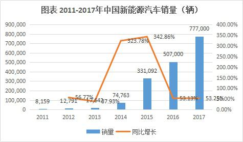 2017年,鋰離子電池主要應(yīng)用市場增速放緩,全年全球鋰離子電池產(chǎn)業(yè)規(guī)模超過3000億人民幣,增速較2016年下滑4個百分點。在新能源汽車推廣政策繼續(xù)推動下,2017年中國電動汽車產(chǎn)量達到65萬輛,在全球電動汽車市場占比將進一步提升。