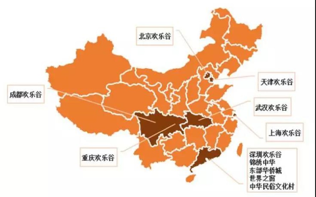 華僑城文旅板塊的重中之重是“歡樂谷”,已在深圳、北京、成都、上海、武漢、天津、重慶這7個(gè)城市形成連鎖經(jīng)營,南京、西安歡樂谷在建設(shè)中?!皻g樂谷”的布局集中在經(jīng)濟(jì)發(fā)達(dá)的一線城市、直轄市和省會(huì)城市,重點(diǎn)布局深圳。近年來,除了總部深圳,華僑城在中國旅游資源最豐富的區(qū)域如云南、海南、陜西、四川、山西、北京、河北等地,廣泛布局全域旅游新業(yè)務(wù)。