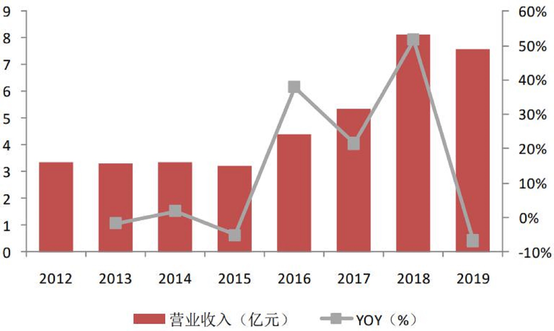 圖表7  飛凱材料營業(yè)收入(百萬元)