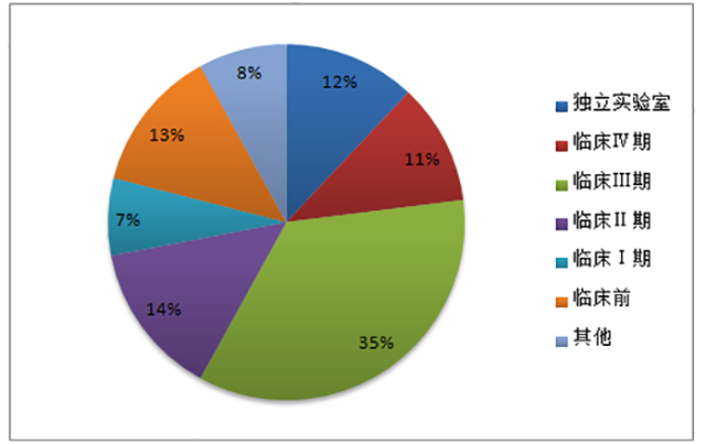 據(jù)美國臨床試驗數(shù)據(jù)庫等數(shù)據(jù)來源顯示,2014年全球 CRO 市場收入約 70%來自臨床市場。其中,臨床Ⅱ和臨床Ⅲ期占了全部收入的 50%左右。我國CRO市場臨床研究占到近60%。其中,臨床I至III期市場合計約 37%,占比相對較低,且服務(wù)水平尚有一定提升空間。近年來,隨著國內(nèi)大中型 CRO 企業(yè)在臨床試驗領(lǐng)域與跨國藥企開展合作,積累了越來越多的優(yōu)質(zhì)客戶和臨床試驗研究經(jīng)驗,服務(wù)水平也正在快速提高,并逐步向國際先進水平靠攏。