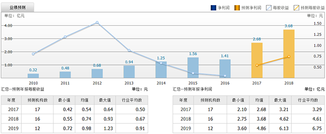 截至2017年7月17日,6個月以內(nèi)共有 17 家機構(gòu)對泰格醫(yī)藥的2017年度業(yè)績作出預測;預測2017年每股收益 0.54 元,較去年同比增長 80%,預測2017年凈利潤 2.68 億元,較去年同比增長 90.4% 。
