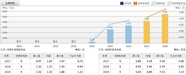 截至2017年7月17日,6個月以內(nèi)共有 9 家機構(gòu)對華大基因的2017年度業(yè)績作出預測;預測2017年每股收益 1.04 元,較去年同比增長 13.04%,預測2017年凈利潤 4.18 億元,較去年同比增長 25.53%。