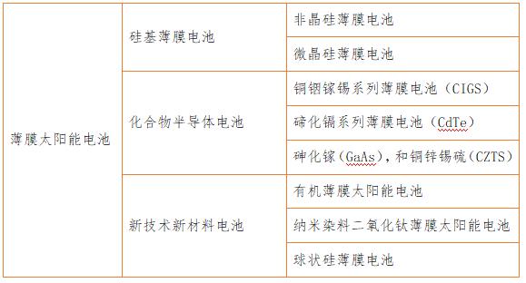 就目前研究領(lǐng)域開發(fā)出的薄膜太陽能電池可分成以下幾類: