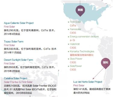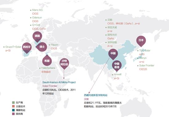 從企業(yè)看,全球薄膜電池產(chǎn)量主要集中在以CdTe電池為代表的FirstSolar,以CIGS電池為代表的SolarFrontier和以硅基薄膜為代表的漢能控股公司。