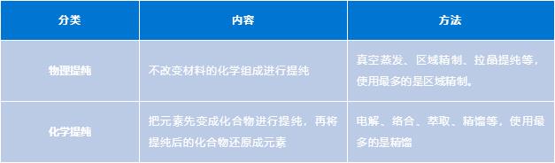 半導(dǎo)體材料所有的半導(dǎo)體材料都需要對原料進(jìn)行提純,要求的純度在6個(gè)“9”以上,最高達(dá)11個(gè)“9”以上。提純的方法分兩大類: