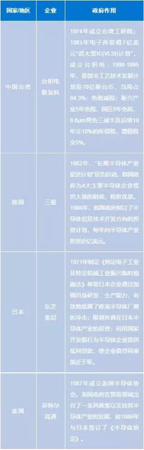 根據(jù)中國臺灣、韓國等國家/地區(qū)半導(dǎo)體產(chǎn)業(yè)發(fā)展的經(jīng)驗(yàn),政府的扶持具有不可替代的作用。臺灣地區(qū)1974年成立臺灣工研院,1987年成立臺積電,并在其上投入了8年后,才實(shí)現(xiàn)盈虧平衡,走上獨(dú)立的發(fā)展的道路;韓國政府通過為國內(nèi)半導(dǎo)體企業(yè)提供大量的財(cái)政、稅收優(yōu)惠來支持本國半導(dǎo)體產(chǎn)業(yè)的發(fā)展。因此,政府的持續(xù)投入是IC制造和發(fā)展的必要條件。