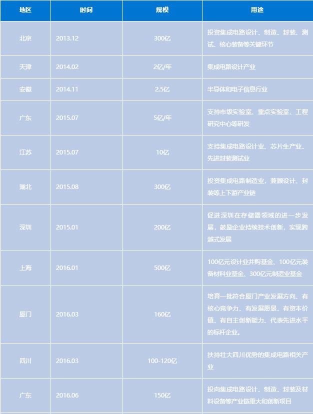 目前,北京、上海、深圳、南京、合肥、廈門、無錫、石家莊、昆山,以及福建、湖北、安徽、陜西、廣東、四川、遼寧等地,均成立了上百億規(guī)模的集成電路產(chǎn)業(yè)投資基金,大基金總規(guī)模達(dá)到1387.2億元,企業(yè)和地方產(chǎn)業(yè)基金規(guī)模累計(jì)超5000億元。