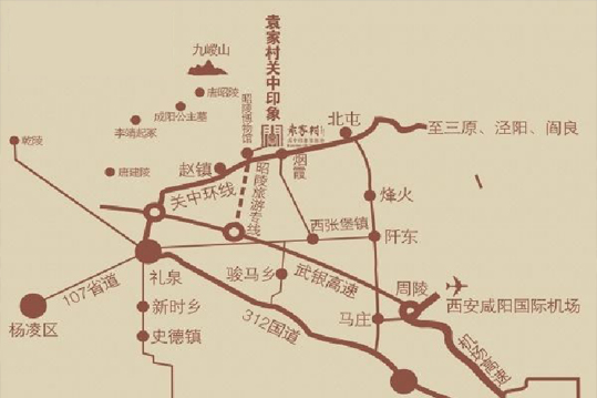 袁家村位于咸陽市禮泉縣,距離咸陽國際機(jī)場較近,空運(yùn)便利,有利于吸引國際旅客前來觀光體驗。附近機(jī)場高速、武銀高速、312國道、107省道、關(guān)中環(huán)線等道路密布,交通發(fā)達(dá),西安至禮泉、西安至袁家村、咸陽至袁家村的客運(yùn)大巴發(fā)車頻率高,游客無論是乘大 巴還是自駕游都很便利。