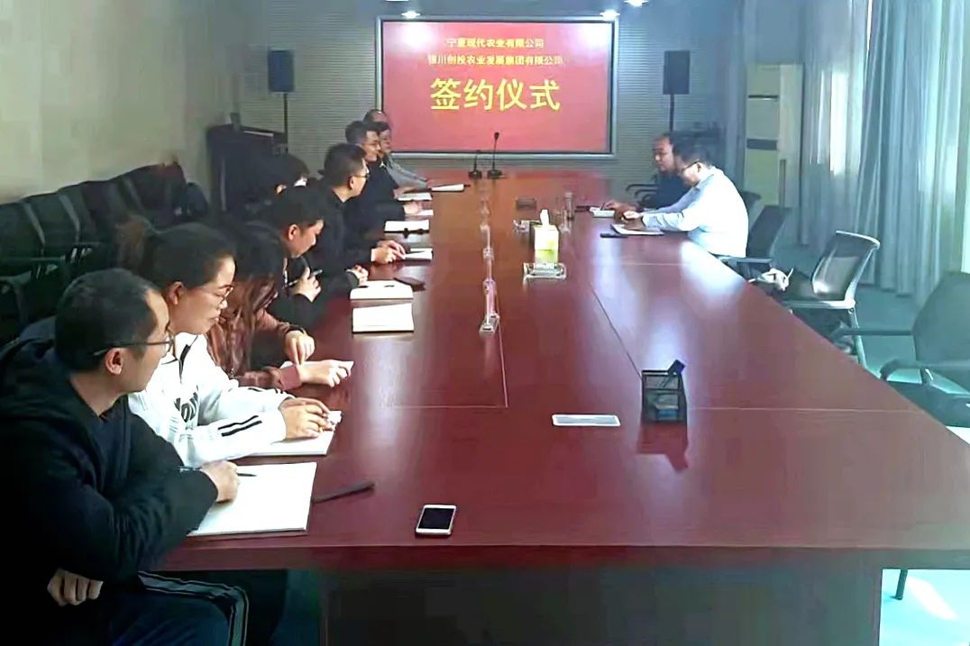 為進(jìn)一步強(qiáng)化國企合作,增強(qiáng)業(yè)務(wù)拓展、優(yōu)勢互補(bǔ),切實(shí)提高合作質(zhì)效,匯聚推進(jìn)合力,近日,寧夏現(xiàn)代農(nóng)業(yè)有限公司(以下簡稱“現(xiàn)代農(nóng)業(yè)公司”)與銀川創(chuàng)投農(nóng)業(yè)發(fā)展集團(tuán)有限公司(以下簡稱“創(chuàng)投集團(tuán)”)舉行了合作協(xié)議簽約儀式。寧夏現(xiàn)代農(nóng)業(yè)有限公司總經(jīng)理張亞東,銀川創(chuàng)投農(nóng)業(yè)發(fā)展集團(tuán)有限公司總經(jīng)理盛軍出席本次簽約儀式。
